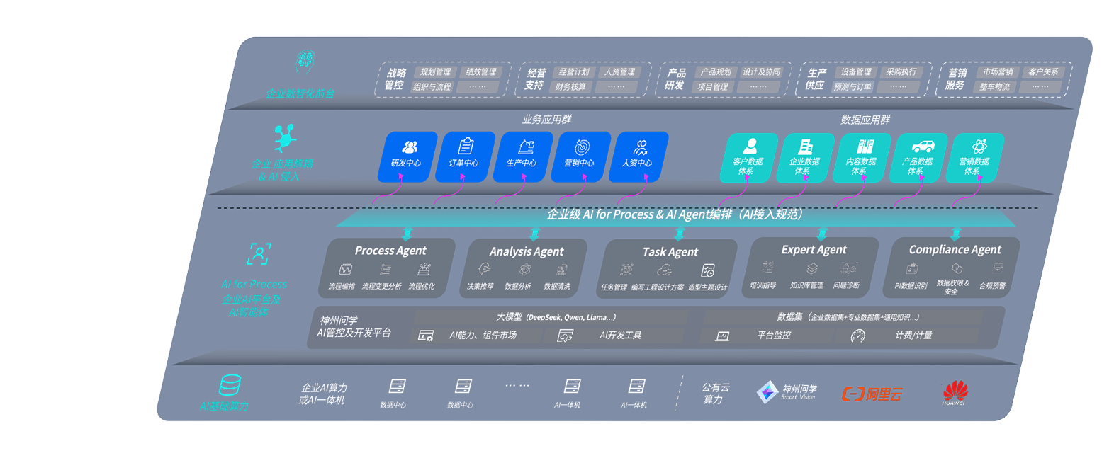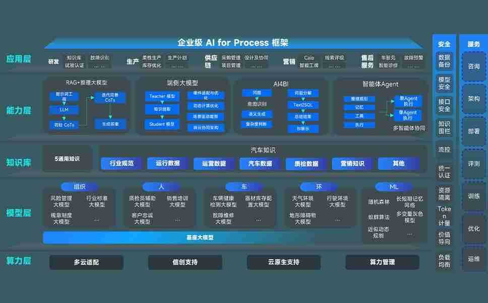 端到端的一站式AI工作空间深度融合了从企业战略规划到日常经营的全流程业务板块,,定向解决车企内部领域多、、部门多、、链条长、、、场景碎片化等难题,,,支持车企快速构建以AI为核心的生产力写作体系,,,,实现任务执行与AI能力的无缝集成与交互